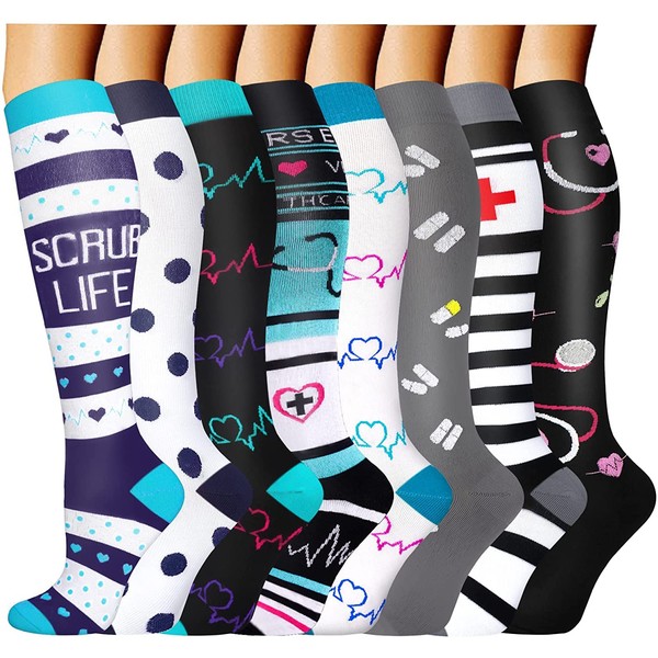 Calcetines graduados de compresión de cobre médico para hombres y mujeres, 8 pares de 15 a 20 mmHg, los mejores para correr y ciclismo atlético