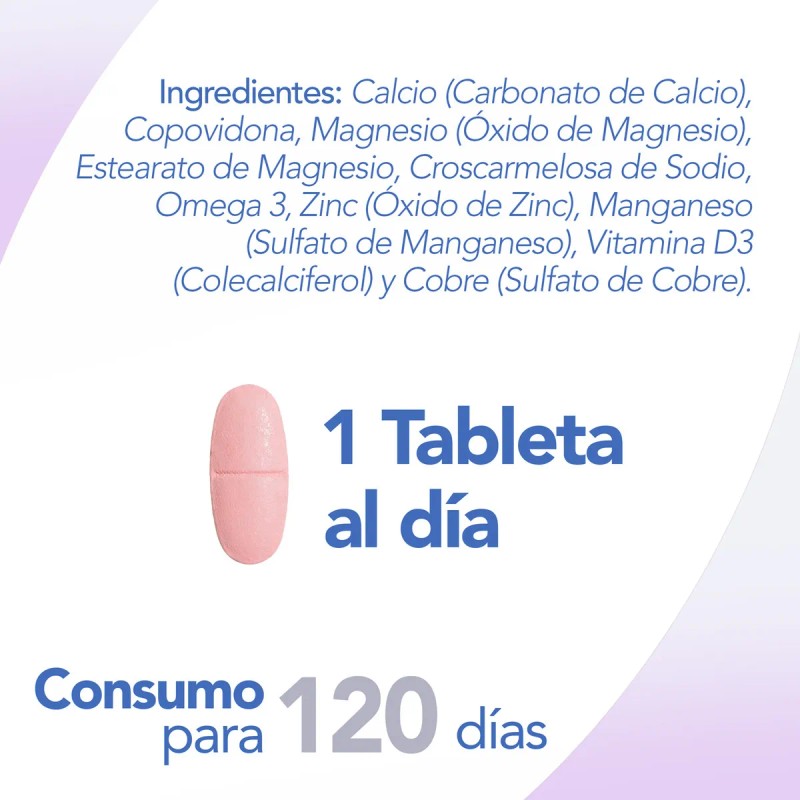 Con 120 tabletas, CALCIUM COMPLEX es ideal para quienes buscan fortalecer sus huesos, mejorar la densidad ósea y contribuir al funcionamiento adecuado de músculos y articulaciones. Cuida tu salud y bienestar diario con una fórmula cuidadosamente desarrollada para mantenerte activo y fuerte.