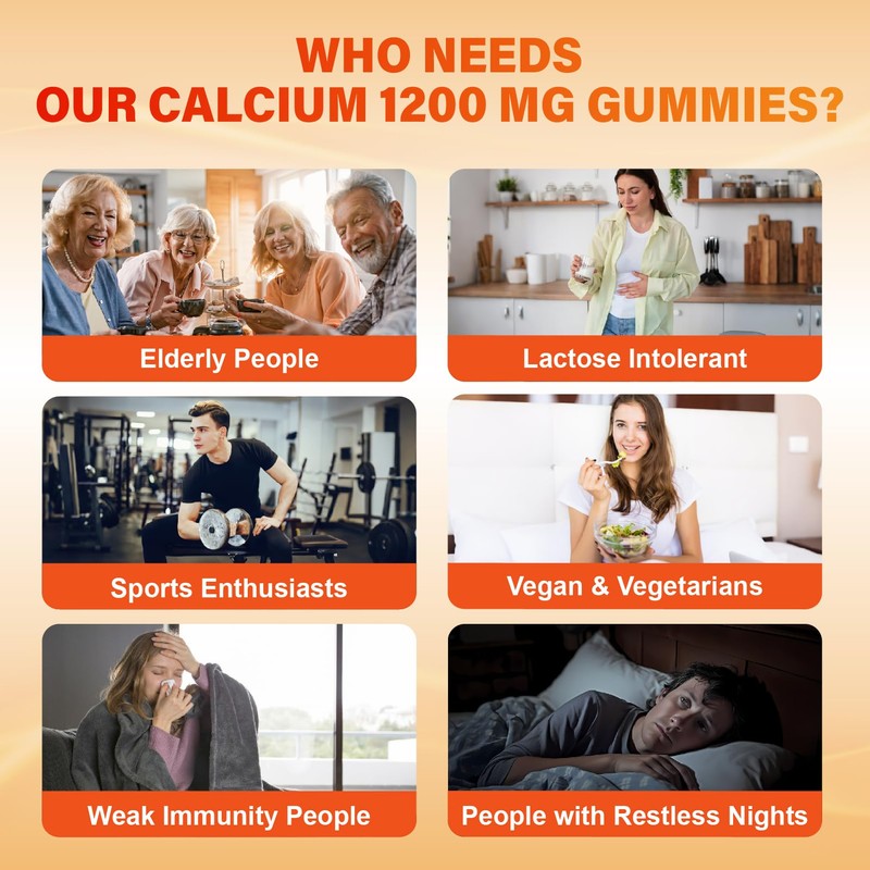 Calcium 1200 mg with Vitamin D3 Gummies for Adults - Calcium Citrate with Vitamin D3 K2, Magnesium, Zinc, Boron, Copper and Ashwagandha - Extra Absorption Calcium Supplement for Women Men