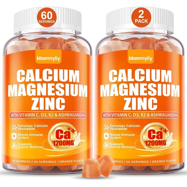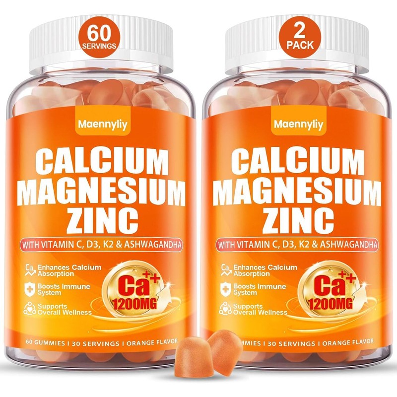 - HIGH BIOAVAILABILITY CALCIUM FORMULA: Our Calcium Magnesium Zinc supplement includes calcium 1200 mg, along with Magnesium, Zinc, Vitamin C, D3, K2, Boron, Copper and Ashwagandha Extracts. Calcium is presented in the form of calcium Citrate, which is gentler on the stomach compared to Calcium Carbonate, making it easily absorbed by the body, acting quickly, and with super high bioavailability. Simply take 2 of our Calcium Gummies daily to fulfill your calcium needs.