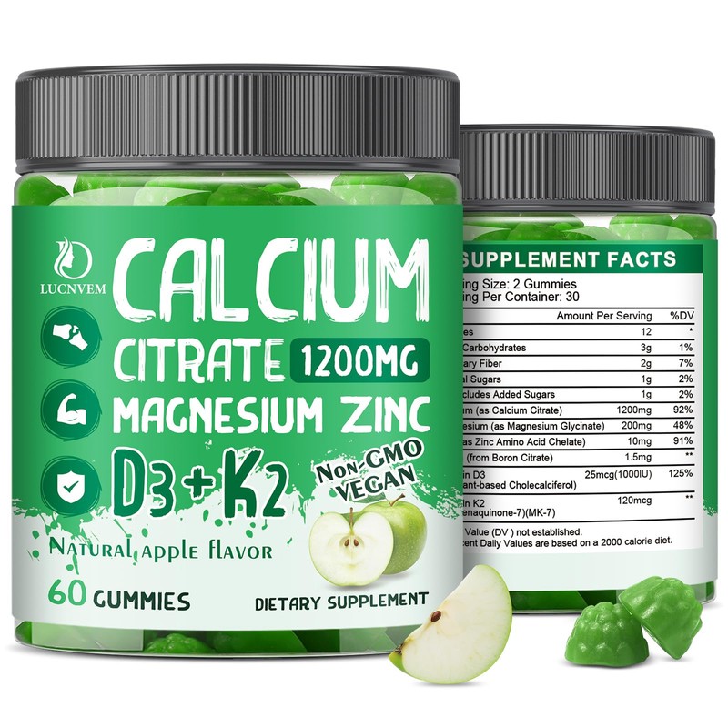 - Delicious Calcium "Snacks": It is a torture to eat hard-to-swallow capsules and powders with a frown every day! LUCNVEM calcium citrate gummies is not sticky, not bitter, and tastes delicious. The apple flavor allows you to complete calcium supplementation in a pleasant way every day. Make daily calcium supplementation beautiful