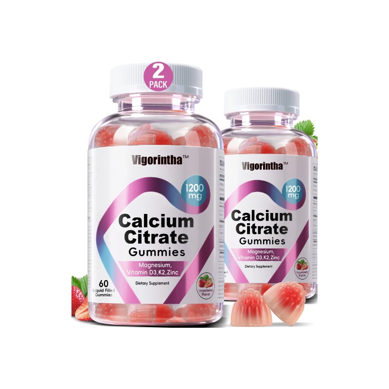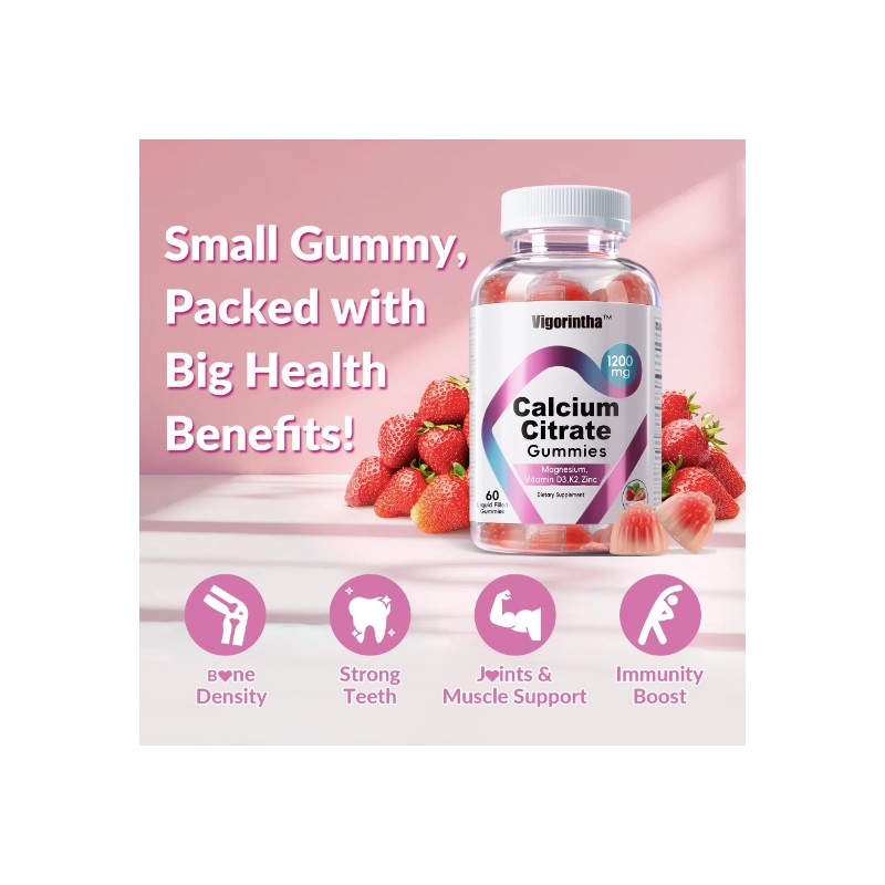 [High-Absorption Calcium] Each calcium gummy delivers 1200mg of chelated calcium citrate, a highly bioavailable and stomach-friendly form to maximize calcium intake without digestive discomfort. Meet your daily calcium needs with ease and enjoy superior absorption—no more bulky supplements!