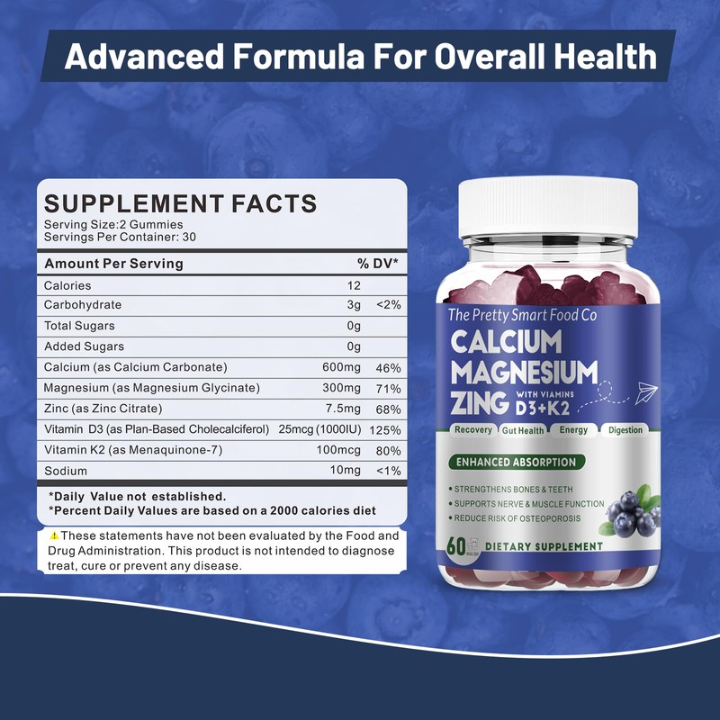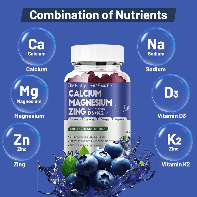 - Calcium Magnesium Zinc Gummies with Vitamin D3 & K2