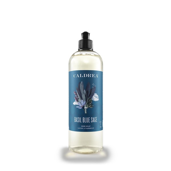 Caldrea Dish Soap, Biodegradable Dishwashing Liquid made with Soap Bark and Aloe Vera, Basil Blue Sage Scent, 16 oz