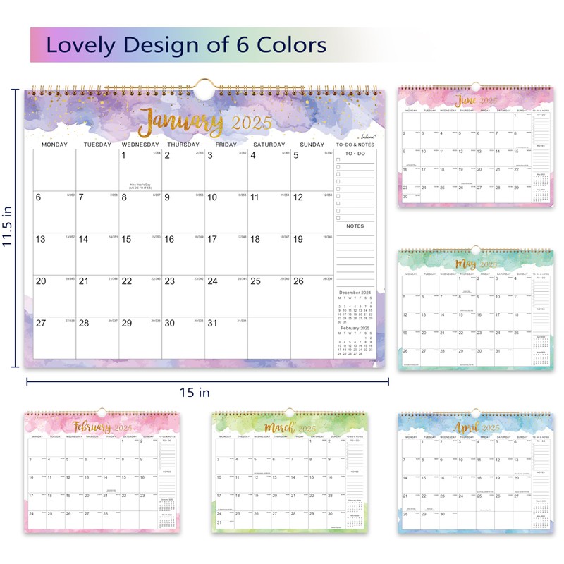 - CALENDAR 2025 UK - 15 x 11.5 inches 2025 wall calendar from Jan. 2025 - Dec. 2025. Large daily blocks (1.77" × 1.77" ) help to jot down appointments and dedicated section for To Do and Notes allow you to efficiently plan the whole month.