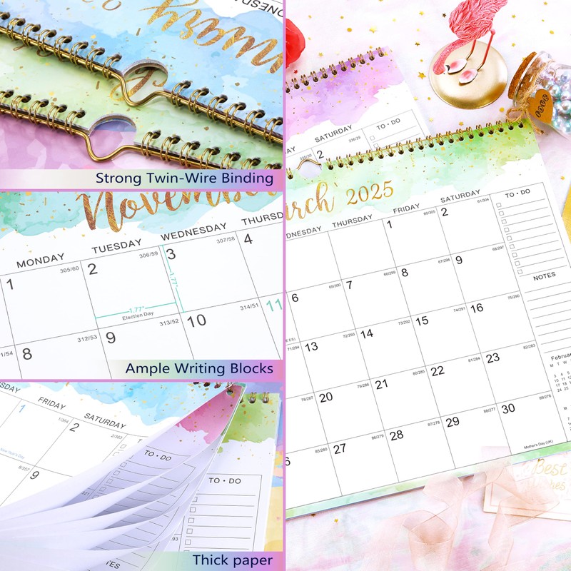 - HIGH-QUALITY CONSTRUCTION - A tough chipboard backing adds support and durability. Sturdy Metal Twin-wire binding with hanging loop facilitates turning pages easily and enables you to hall on the wall steadily and nicely.