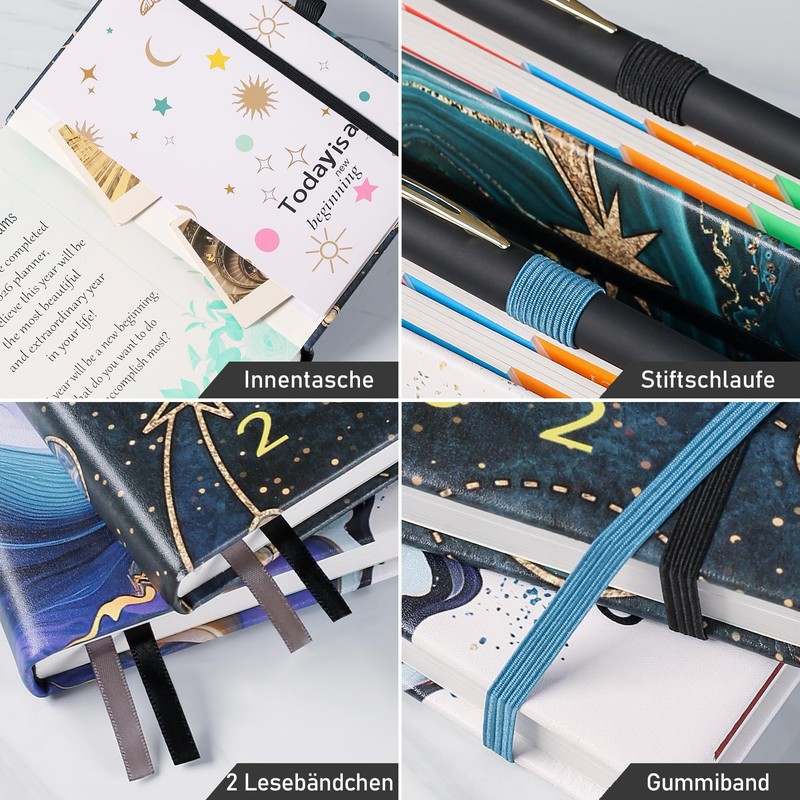 • Practical extras for everyday use: With two ribbon markers, an integrated storage bag and an elastic pen loop, this planner is ideal for everyday use - perfect for work, school or home.