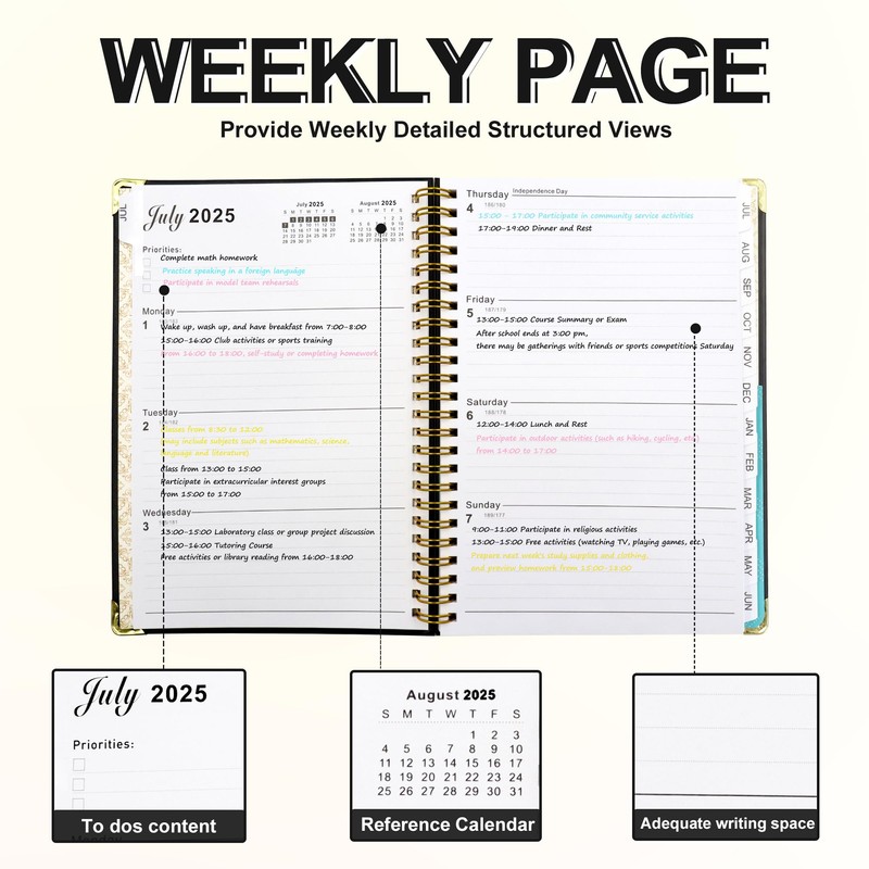 - 【 Efficient Time Management 】 2025 full year calendar planner covering January through December 2025, keeps your work schedule organized. With monthly and weekly calendar pages, there's plenty of room for scheduling, setting goals and tracking progress, making work planner easy to take control of your life and work.