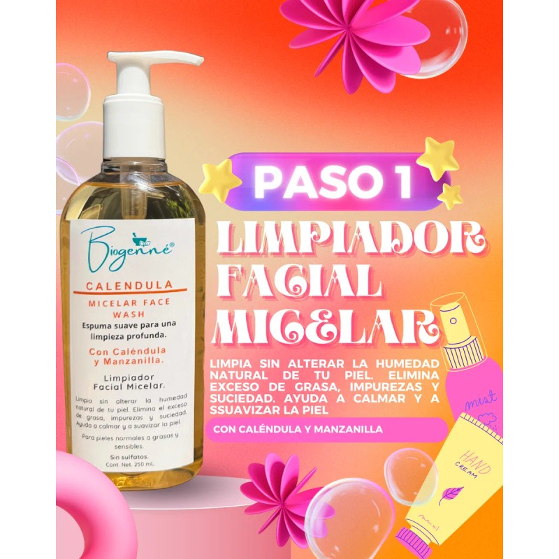 Comienza tu ritual con el Jabón Facial Micelar, donde la magia de la caléndula y la manzanilla se unen para limpiar profundamente y mantener la humedad natural de tu piel. Es como un suave abrazo que elimina impurezas y deja tu rostro fresco y libre de enrojecimientos. 🧼🌼