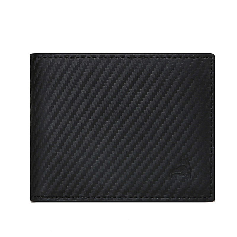 CALFART RFID Slim Front Pocket Wallets For Men - Genuine Leather Credit Card Mens Bifold Wallet With 2 ID Windows Zipper Coin Stylish Passcase (Black-Carbon Fiber)