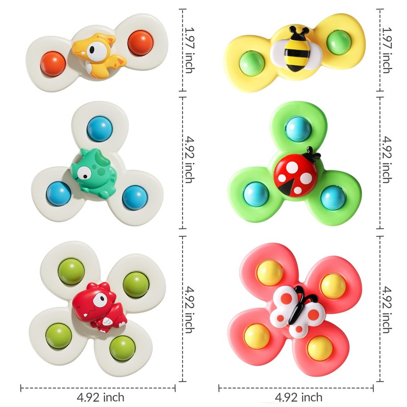 CalfQueen 6 PCS Suction Cup Spinner Toys for Kids Ages 1-3, Fidget Spinner Toys for 1 Year Old Boy Girl 12 Months Gifts, Sensory Bath Toy for Toddlers and Infants Birthday Christmas Baby Gift