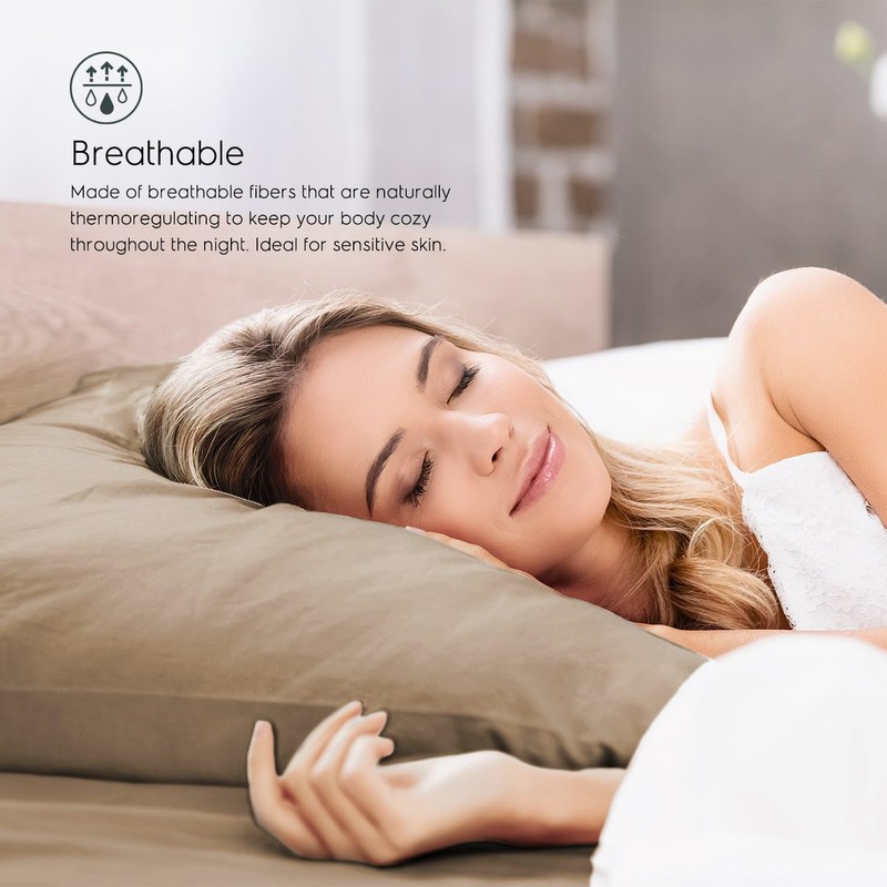 • 🌡 COOLING AND MOISTURE-WICKING - Experience the pinnacle of cooling softness and breathable comfort with our bamboo derived viscose fabric. Naturally thermo-regulating, it ensures you stay cool and relaxed throughout the night, offering comfort for all seasons. Our resort-grade bedding, with its moisture-wicking properties, caters to hot sleepers and those with sensitive skin, enveloping them in luxurious softness.