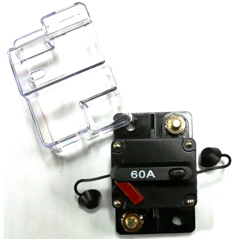 Caliber CB60 60amp Marine Grade Circuit Breaker 60a w/ Manual Reset and Free Cover, Compatible with All 12, 24 and 36 Volt Systems for Electric Trolling Motors.