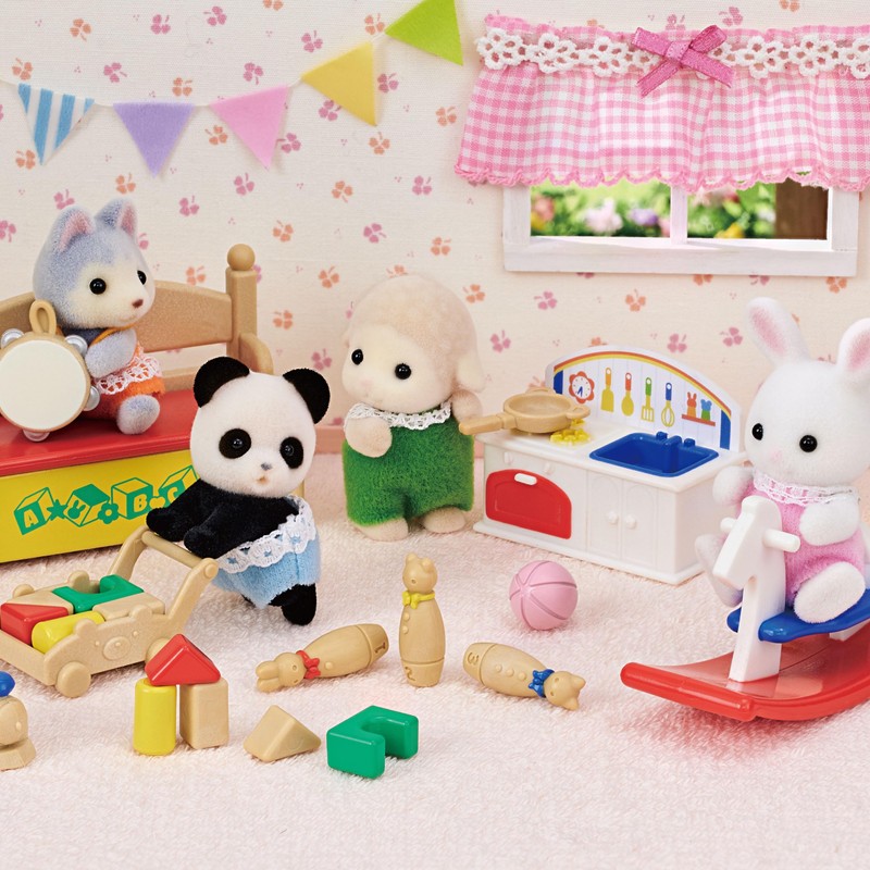 Calico Critters Baby's Toy Box - Includes Snow Rabbit and Panda Babies