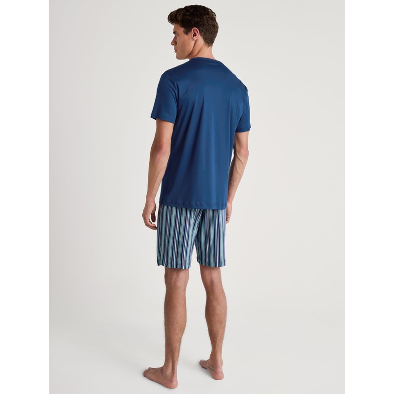 CALIDA Relax Superlight Men's Short Pyjamas Made from 100% Extra Light Supima Cotton, Breathable and Temperature Regulating, Pottery Blue