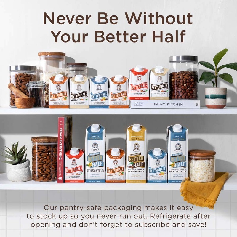 Let go of your half and half with this breakfast gamechanger. Our almond and coconut Better Half is intensely rich, and vegan, dairy free and guilt-free at 15 calories and 0g sugar per serving.
