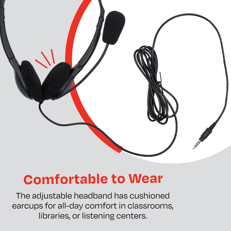 Califone 3065AVT Lightweight Personal Multimedia Stereo Headset with To Go Plug, Black, Fully Adjustable Headband Fits All Students, Recessed Wiring Resists Prying Fingers