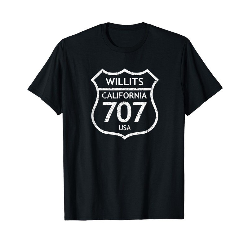 - Willits California State USA home location retro sign. 707, CA area zone. Featuring a Retro, Vintage, Distressed type look. This California hometown zip code tee shirt would also make a great gift.