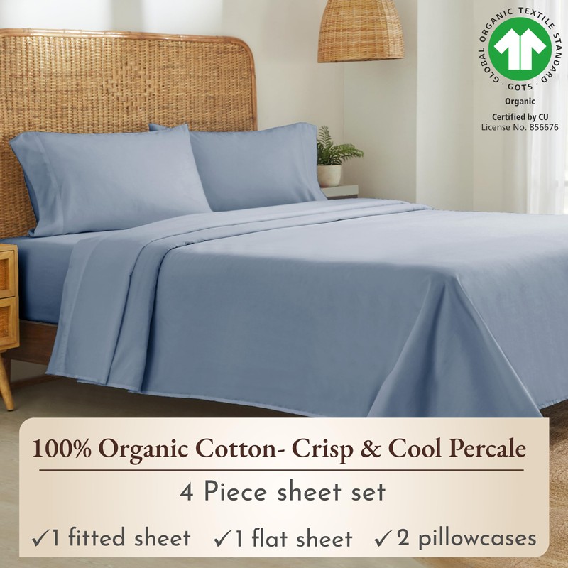 - WAKE UP REFRESHED EVERY DAY: Enjoy the cool and crisp feeling of percale weave with our 100% organic cotton bed cotton sheets for king size bed set for a comfortable and refreshing sleep.