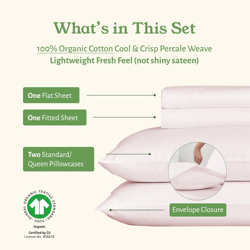 - WAKE UP REFRESHED EVERY DAY: Enjoy the cool and crisp feeling of percale weave with our 100% organic cotton pink sheets full size set for a comfortable and refreshing sleep. Percale sheets are naturally crisp with a matte finish that softens beautifully over several washes, and this lightweight fabric is comfortable for all seasons.