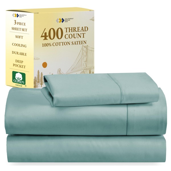 California Design Den Twin Sheets Set - Soft 400 Thread Count Sateen, Natural 100% Cotton Sheets with Deep Pockets, Cooling and Durable Bedding Set - Teal