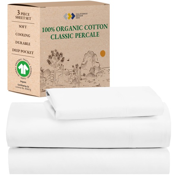 California Design Den Twin XL Sheets Set, Deep Pockets 100% Organic Cotton Sheets, Percale Sheets, GOTS Certified, Soft, Crisp & Cooling Sheets, 3 Pc XL Twin Sheets, White Sheets for Dorm, Hospitals
