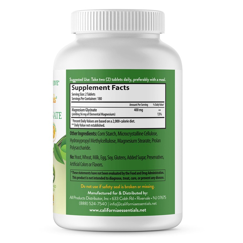 - 𝐂𝐥𝐞𝐚𝐧, 𝐍𝐚𝐭𝐮𝐫𝐚𝐥 𝐈𝐧𝐠𝐫𝐞𝐝𝐢𝐞𝐧𝐭𝐬 - Free of synthetic fillers and preservatives, California Essentials are made with vegan, non-GMO ingredients that are gluten and dairy-free. Our magnesium bisglycinate tablets are 3rd party-verified, and formulated and packaged at a USA GMP-certified facility to ensure quality and consistency in every batch