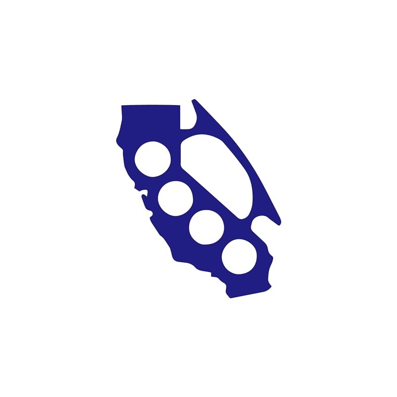 California Map Brass Knuckle Sticker Vinyl Decal Notebook Car Window Laptop 4.5" x 5.5" (Blue)