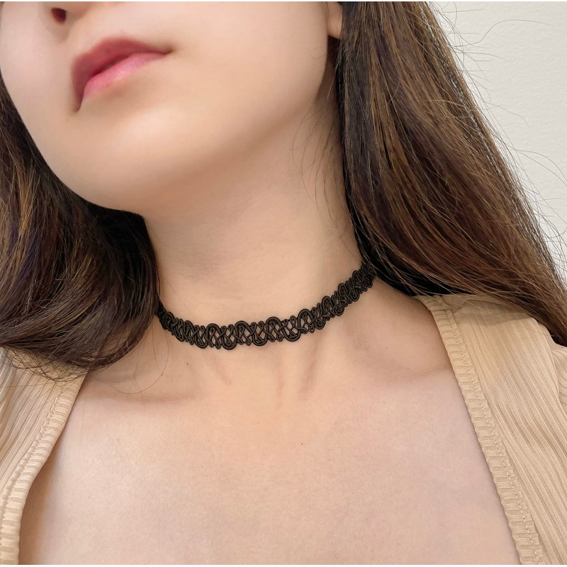 California Modern Fashions Wavy Gothic Black Lace Choker Necklace
