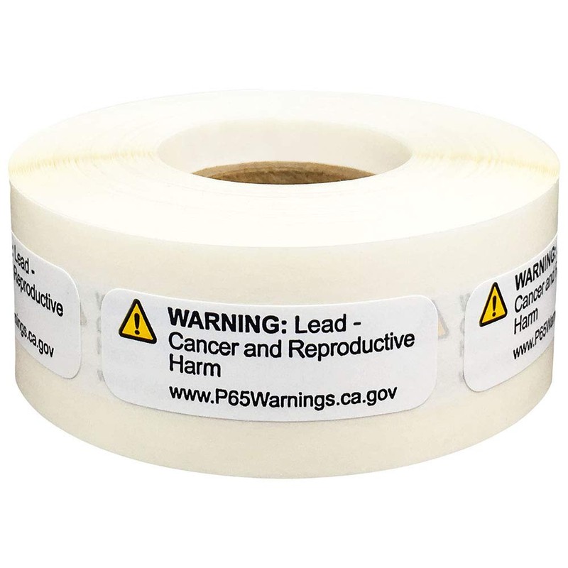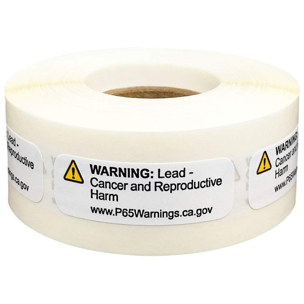 - Warning: These are generic prop 65 labels that are regulated by the State of California. They provide warning for lead. They provide the P65Warning website as well as a yellow triangle warning symbol. The font is an 8 pt font and the website is a 6 pt font. They work well for products manufactured or distributed from California that require a prop 65 warning.