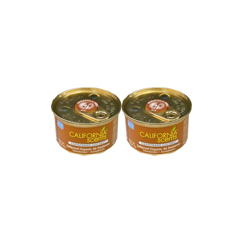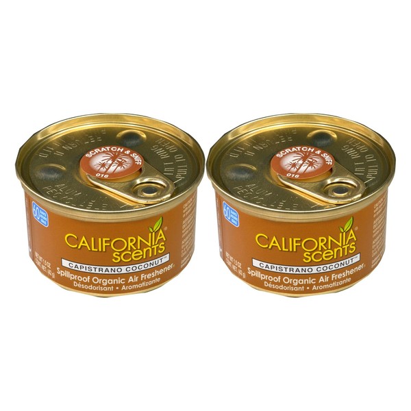 Kit contains 2 cans of the California Scents SpillProof Cans in the Capistrano Coconut Scent