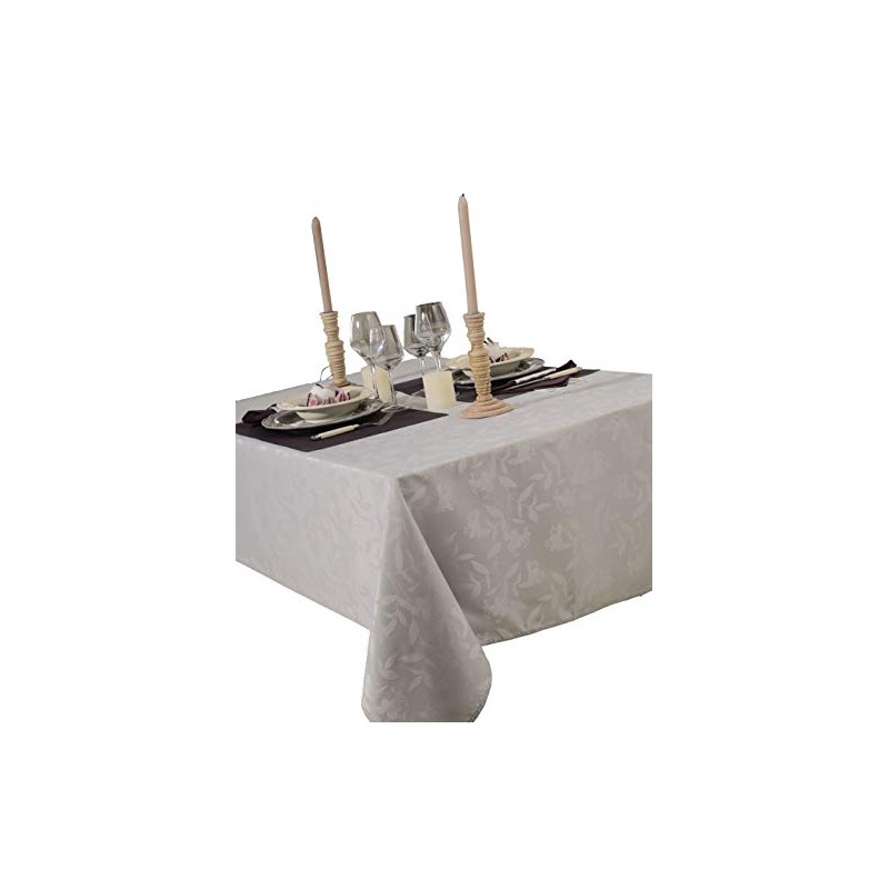 Damask Tablecloth 150 X 300 cm Grey Pearl Colour: _____ 100% Polyester Easy to Care For, Quick Drying and Easy-Iron
