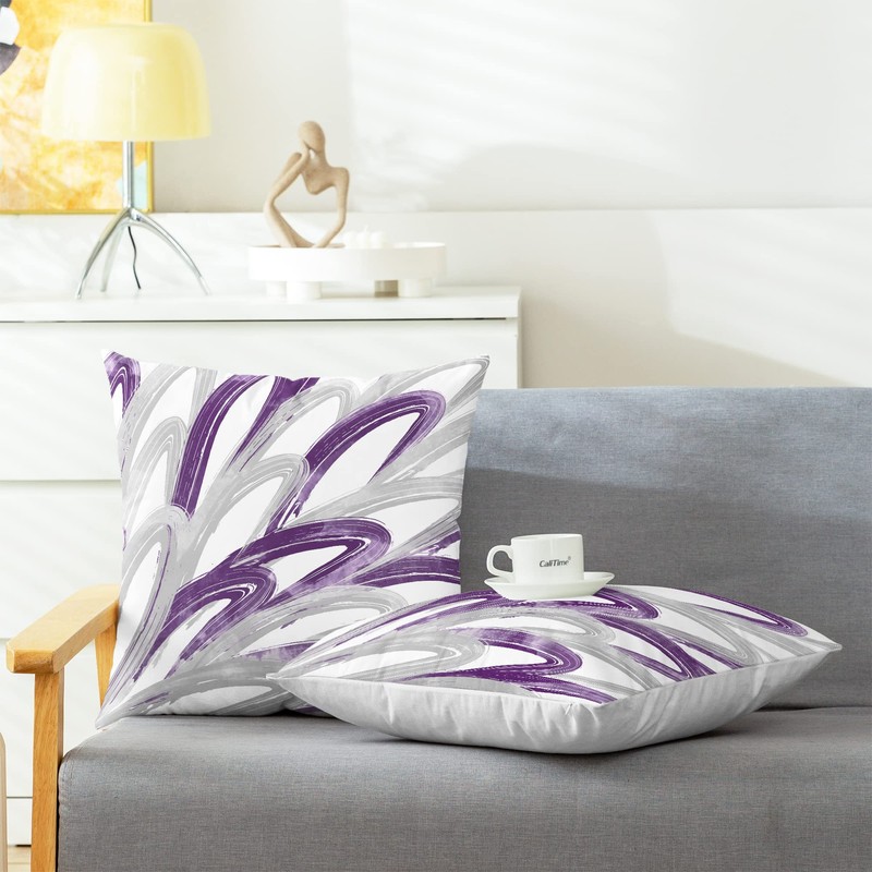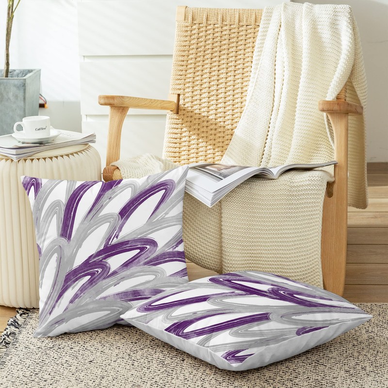 CaliTime Throw Pillow Cases Pack of 2 Cozy Fleece Two-Tone Abstract Feather Decorative Cushion Covers for Couch Bed Sofa Farmhouse Decoration 16 X 16 Inches Purple Grey