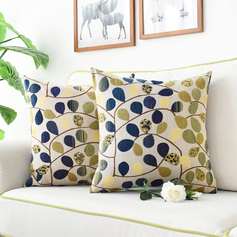 - Contains: Brand New 1 PC Square Cover/Shell 16" X 16"(40 X 40cm), No Filler/Insert, Leaves Colors Contain: Pale Yellow, Brown, Medium Blue, Navy Blue