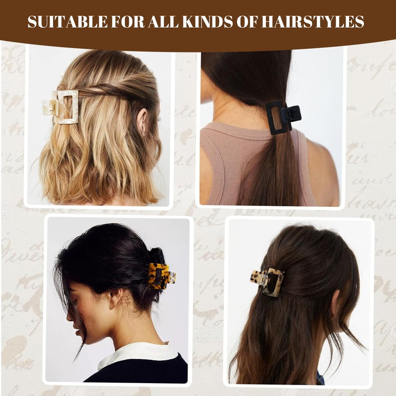 5.Vier Attraktive Farben: Das Set enthält vier kleine Claw Clips in den Farben Marmor, Leopard, Tortoise und Schwarz. Diese Farbauswahl ermöglicht es Ihnen, jede Frisur und jedes Outfit mühelos mit einem eleganten und geschmackvollen Look zu kombinieren. Die Farbtöne sind sorgfältig ausgewählt, um Ihnen stilvolle und einzigartige Styling-Optionen zu bieten