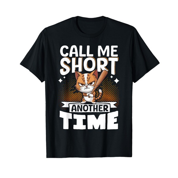 - This Call Me Short Another Time motif is perfect for you if you are a short stature individual or petite person. Wear this Cat with baseball bat design at your next social gathering if you are embracing your small stature.