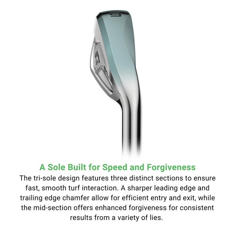 - A Sole Built for Speed and Forgiveness. The tri-sole design features three distinct sections to ensure fast, smooth turf interaction. A sharper leading edge and trailing edge chamfer allow for efficient entry and exit, while the mid-section offers enhanced forgiveness for consistent results from a variety of lies.