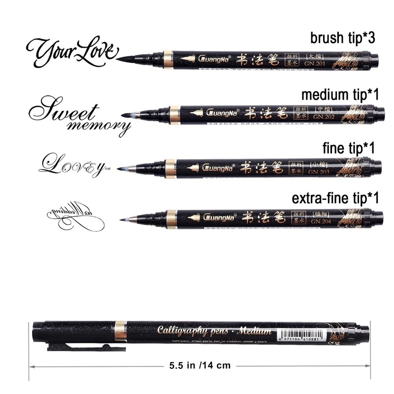 - ✏【6pcs Calligraphy Pen】- The lettering pen Include 1 x extra-fine brush pen, 1 x fine brush pen, 1 x medium brush pen, 3 x brush calligraphy pen