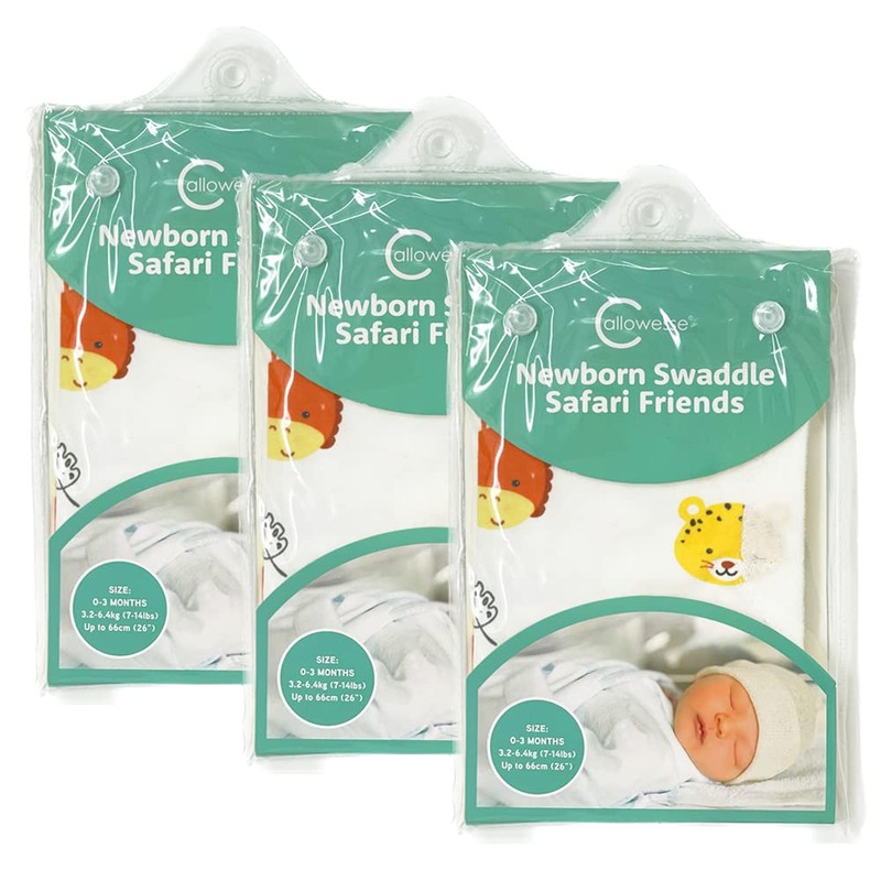 Callowesse 100% Cotton Newborn Swaddle 0.5 TOG – Adjustable Baby Swaddle Wrap, Baby Essential - Safari Friends Pack of 3