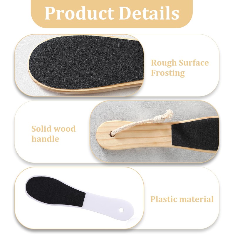 - Professional design: the double-sided foot files have a rough side for removing dead skin and calluses on the heels and a finer side for polishing and smoothing the skin. The ergonomic wooden handle provides a comfortable grip.