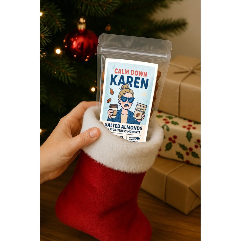 - Crunchy, bold, and salted just right, these almonds are the snack equivalent of a deep breath - minus the drama and the group texts demanding change. Calm Down Karen turns snack time into a mini therapy session without the eye rolls or lecture notes.