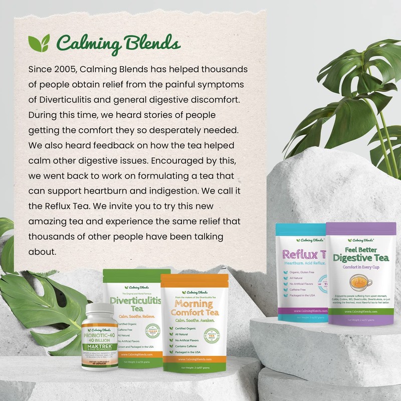 CALMING BLENDS Acid Reflux Loose Leaf Tea | Acid Reflux, Heartburn & Indigestion | Caffeine-Free | 36 Cups