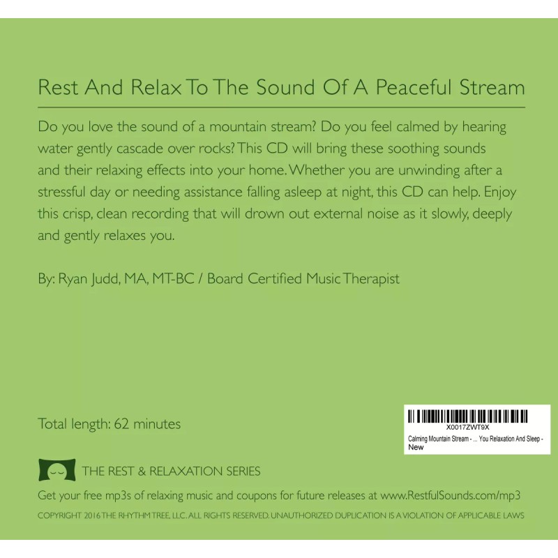 Relax and fall asleep to the soothing sounds of cascading water with the Calming Mountain Stream CD.
