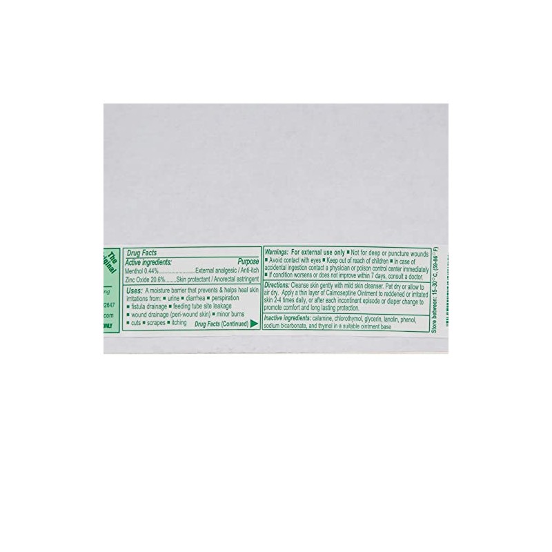 Calmoseptine ointment is a moisture barrier ointment that contains calamine, zinc oxide, menthol, and lanolin. Originally designed to treat diaper rash, Calmoseptine ointment has successfully been used to treat incontinence sites. Feeding tube site leakage, wound drainage, minor cuts and scrapes, minor burns, fecal or vaginal fistulas. Calmoseptine ointment acts as a barrier to protect the skin and draw away moisture. By creating this barrier the Calmoseptine ointment relieves discomfort and itching.