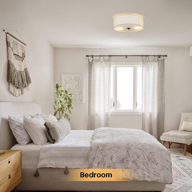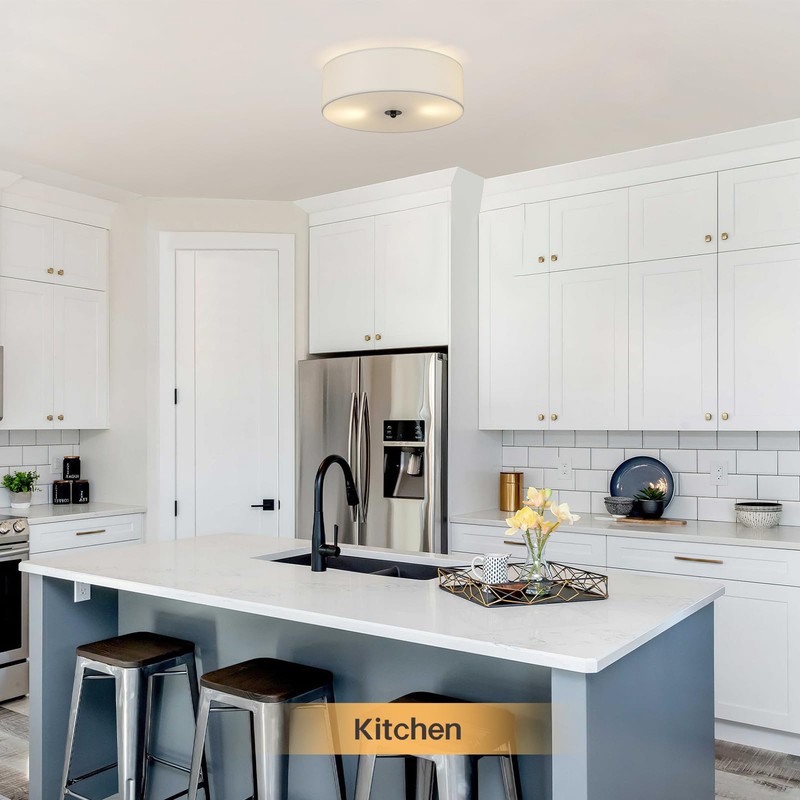 - 【Refined Design & Soft Lighting】This ceiling light features a white fabric drum shade, offering an elegant design that enhances any room. Its dual-light setup provides ample illumination, emitting a soft and soothing glow, perfect for creating a warm and inviting ambiance!