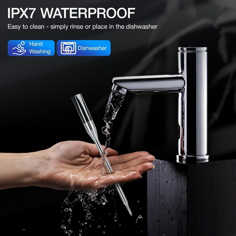 - 🔥 Waterproof & Magnetic Design: Crafted from premium 304 stainless steel and heat-resistant materials, the probe is IPX7 waterproof, ensuring easy cleaning. The base unit’s built-in magnet lets you securely attach it to your grill or smoker for ultimate convenience.