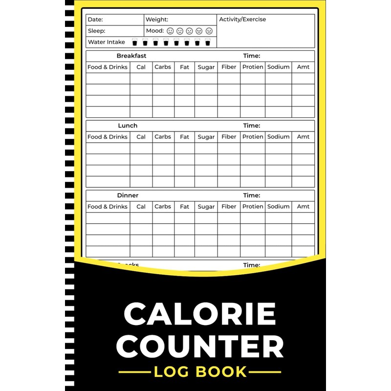 Calorie Counter Log Book: Daily Nutrition Journal to Track Meals, Calories, Carbs, Protein, Fat, Fiber, Sugar & Sodium