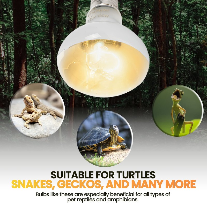 - SUITABLE FOR TURTLES, SNAKES, GECKOS - Bulbs like these are especially beneficial for all types of pet reptiles and amphibians. This includes bearded dragons, lizards, chameleons, snakes, geckos, turtles, tortoises, frogs, and more
