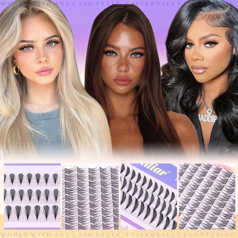 - Premium-Quality Cluster Eyelash Extensions Comfortable: At just 0.02g per eyelash cluster—lighter than real lashes! Pro-level eye lash clusters, crafted from ultra-soft, cloud-light material. These premium eyelash kit ensure effortless application, long-lasting wear, and weightless, all-day comfort