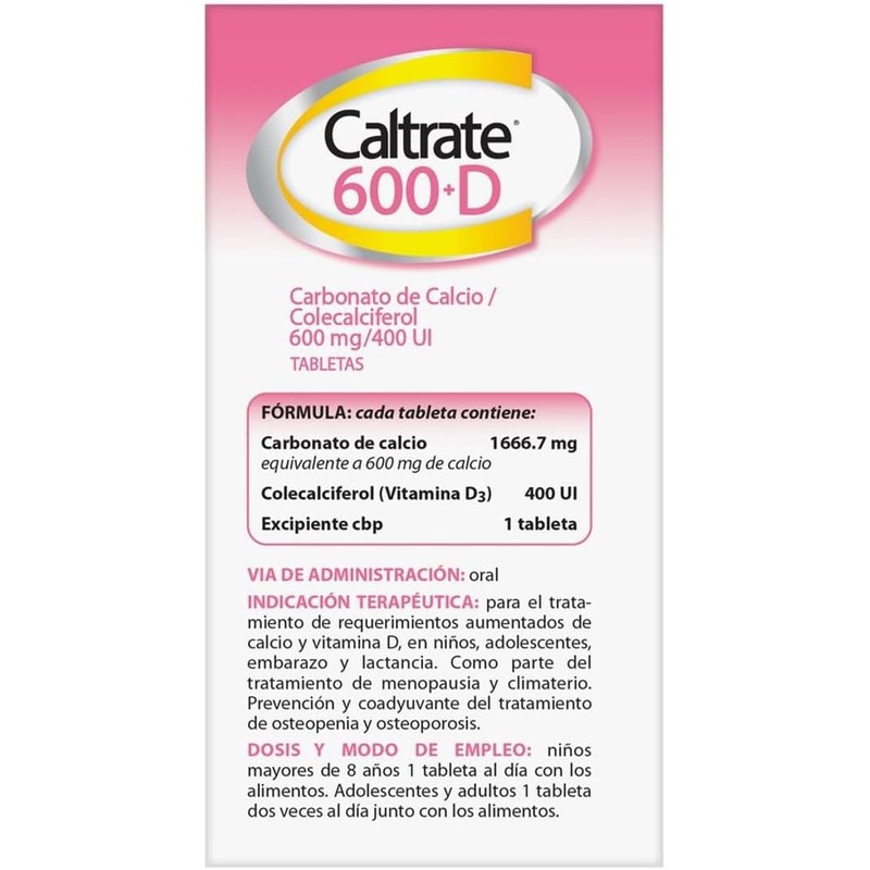 Caltrate Suplemento de Calcio 600 +D 600mg / 400 UI Frasco con 30 tabletas